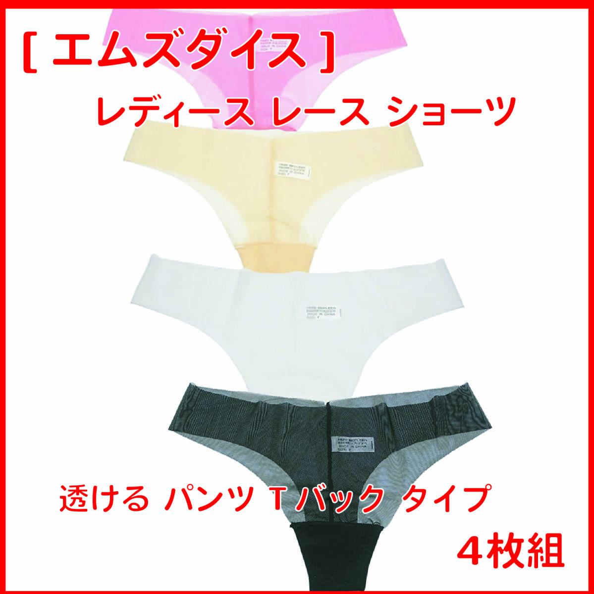 > (エムズダイス)M's Dice レディース レース ショーツ 【 パンティ 下着 】 透ける パンツ Tバック タイプ 4枚組 (Cセット)