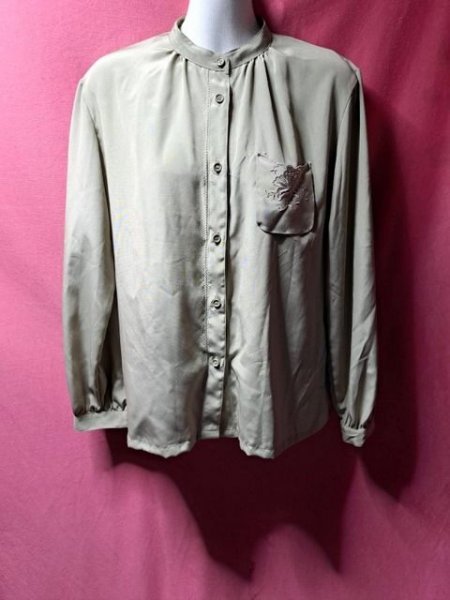 - USED LEPORTE スタンドカラー ブラウス サイズL グリーン系