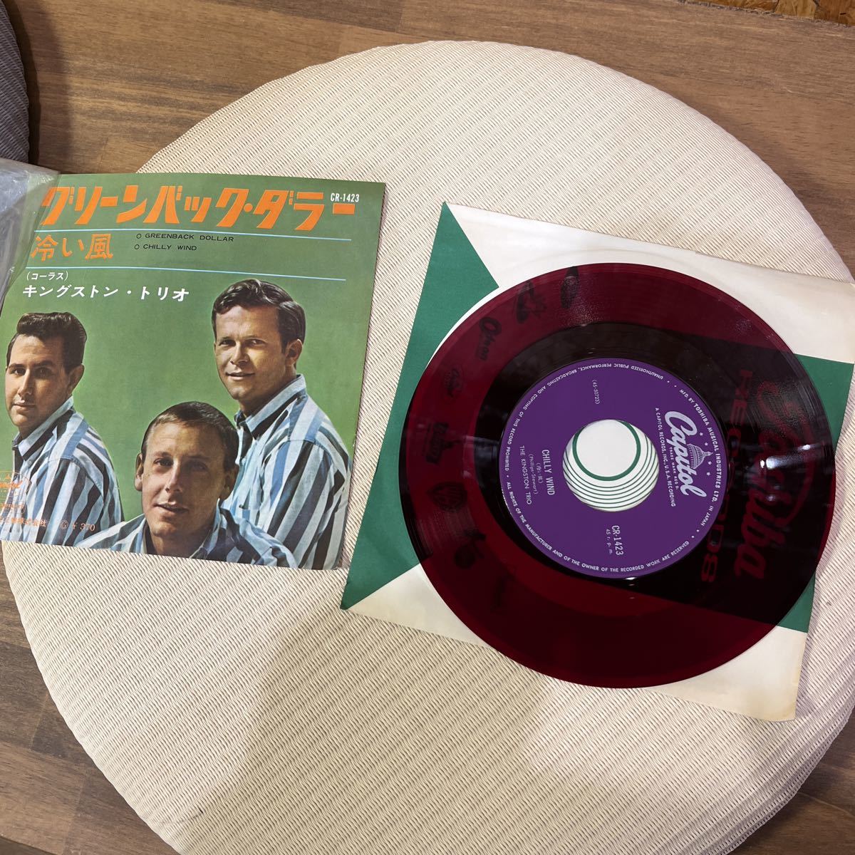 - 昭和 レコード キングストン・トリオ/グリーンバックダラー/冷い風 Odeon CR-1423 赤版