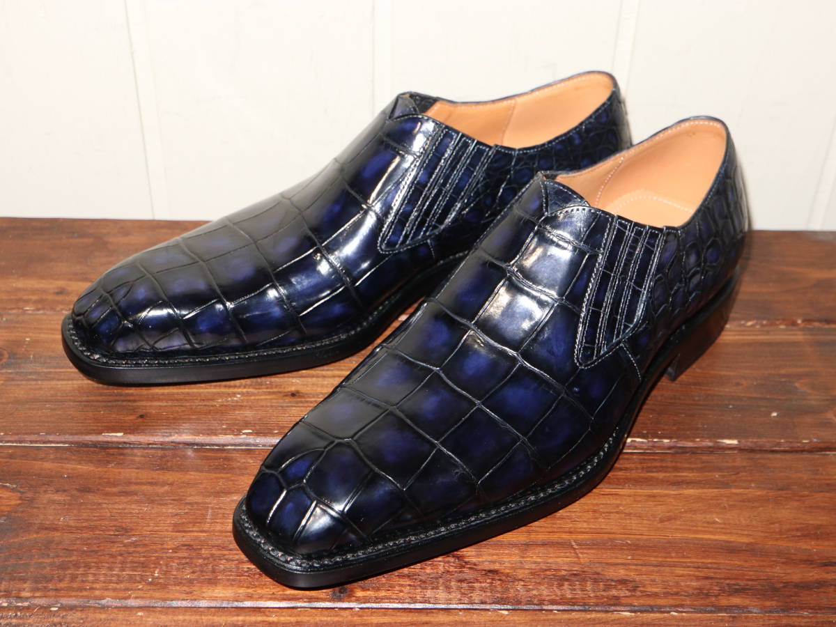 - 未使用 グラデーション クロコダイル スリッポン 40 25㎝ / サイドゴア プレーントゥ メンズ クロコ