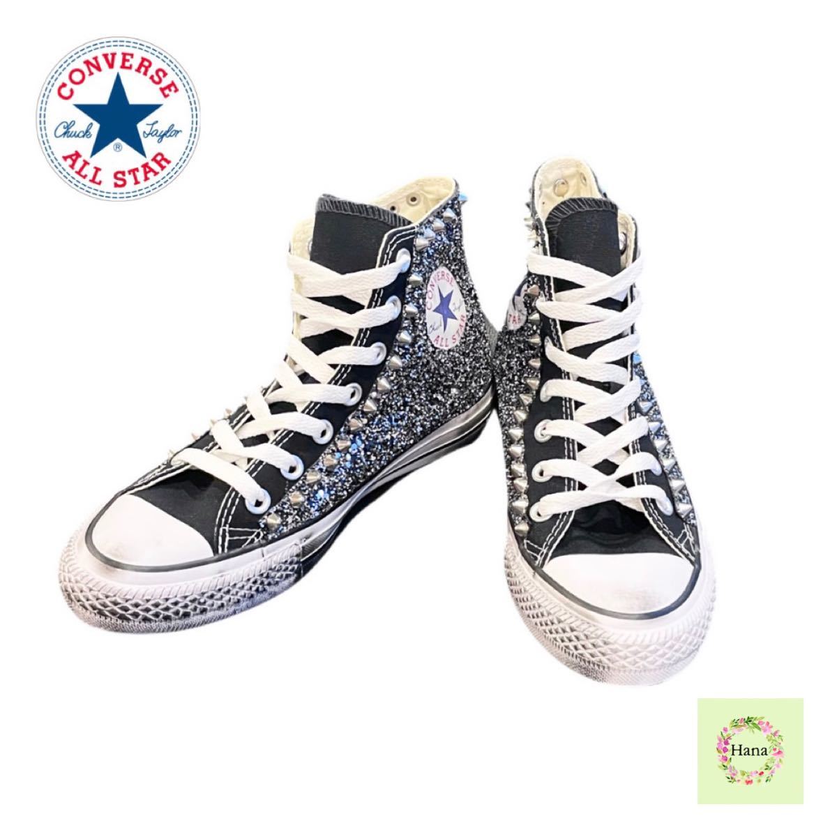 > 【展示品】 CONVERSE コンバース ハイカットスニーカー スタッズ グリッター ユニセックス 靴 スニーカー M9160C 黒 ブラック 中古