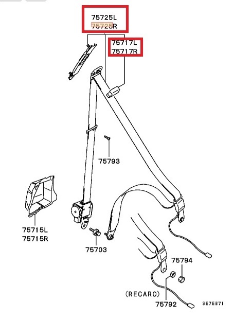 - 【廃盤ラスト1個】ランエボ 三菱純正 シートベルトL セット CP9A CN9A gsr rs ランサー エボリューション 助手席 生産終了