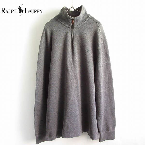 > 美品 90s Polo ポロ ラルフローレン ハーフジップ リブ ニット スウェット XL グレー系ビッグサイズ 刺繍ポニー D147-13-0023XV