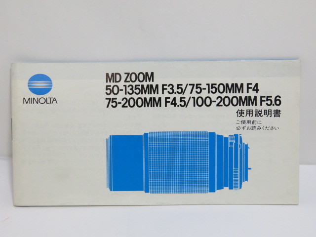 - 【 中古品 】MINOLTA MD ZOOM 50-135MM F3.5/75-150MM F4 75-200MM F4.5/100-200MM F5.6 使用説明書 ミノルタ [管ET825]