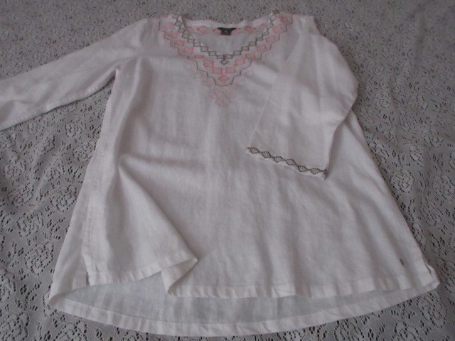 - S)■ドイツ/ブランド品■【Eddie Bauer エディーバウアー】■手洗い可能/涼しい麻48%■ミシン刺繍/ブランドアクセサリー付き■ブラウス