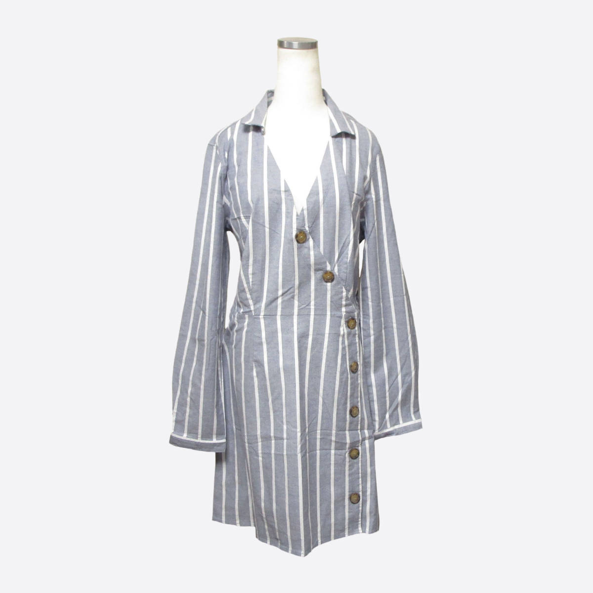 - ★SALE★Abercrombie & Fitch/アバクロ★オックスフォードストライプ長袖シャツワンピース (Navy/White/M)
