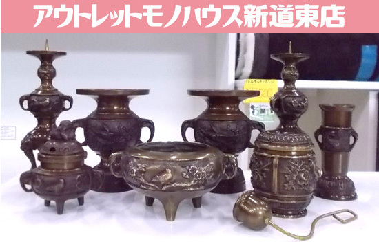 仏具 真鍮製 香炉 ロウソク立て 花立 マッチ消し 線香差し ローソク消し 中古品 現状 札幌市東区 新道東店