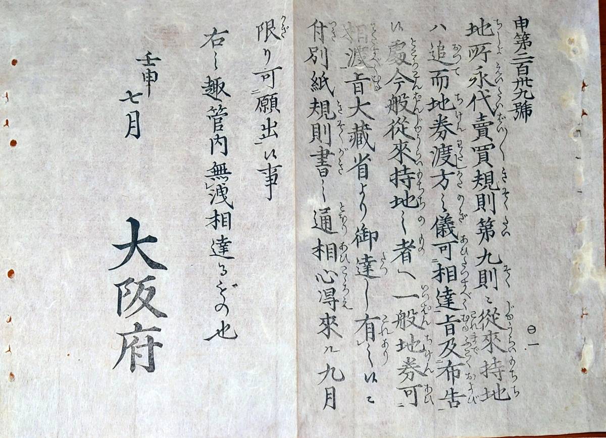 - f23032429〇明治布告 地所永代売買規則 地券渡方規則 明治5年 大阪府〇和本古書古文書