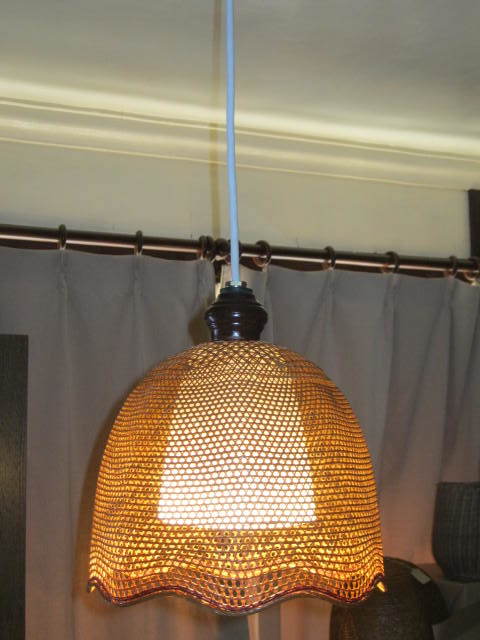 - <昭和レトロ創作照明Wシェード硝子竹編み込みペンダントライト和風一点物>