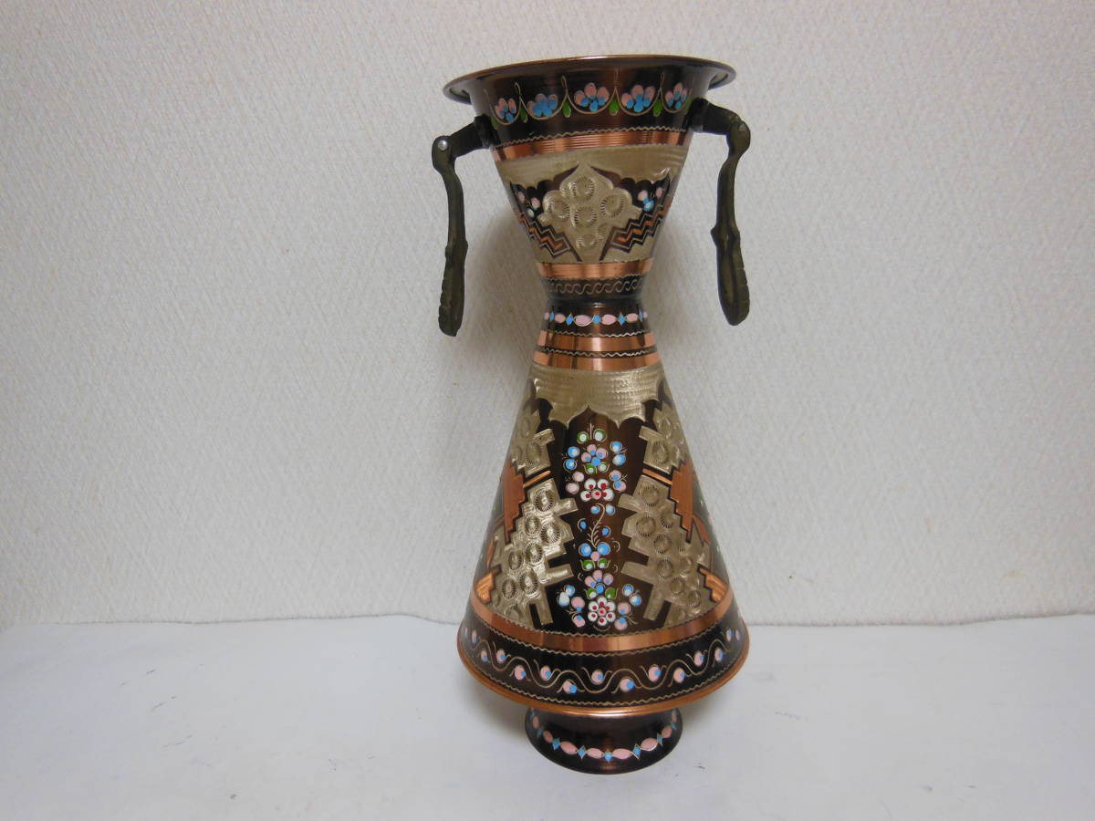 - トルコ製工芸品 銅製 花瓶 彫花・漆塗 高さ:30cm 最大直径:12cm