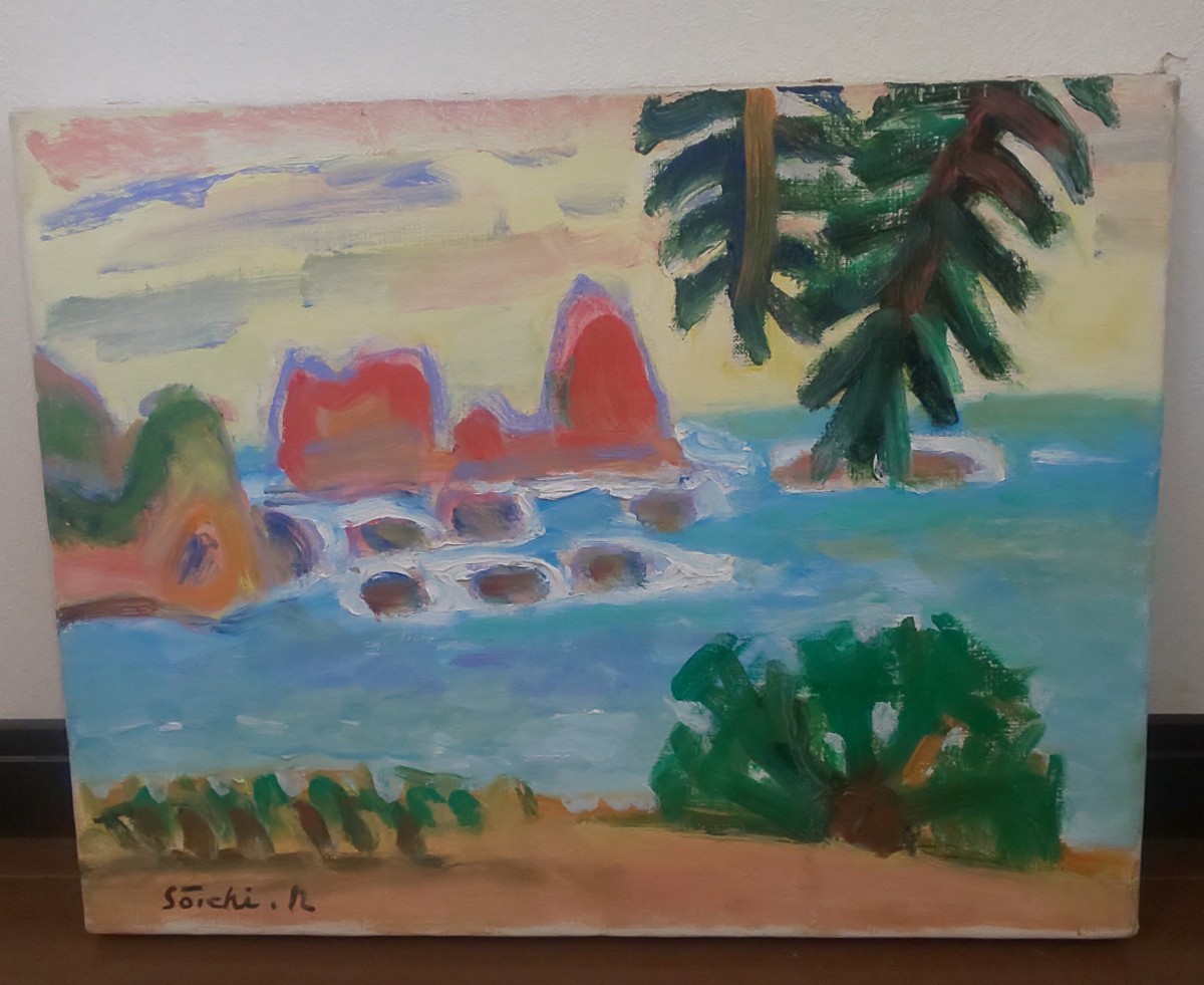 > 真作 油彩 中西総一 『南伊豆の海』1969年 サイズ42×31cm 風景 海辺 海岸 波 美術 玄関 お部屋 トイレ キッチンなどに