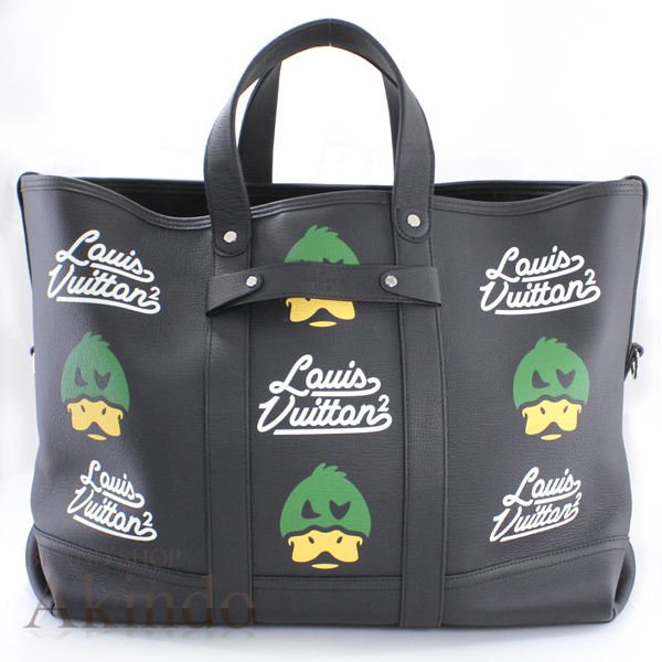 - 【新品】ルイヴィトン トートバッグ トロリートート メンズ LVスクエアード NIGO M59373 アヒル 黒ブラック カモ 2Wayショルダー
