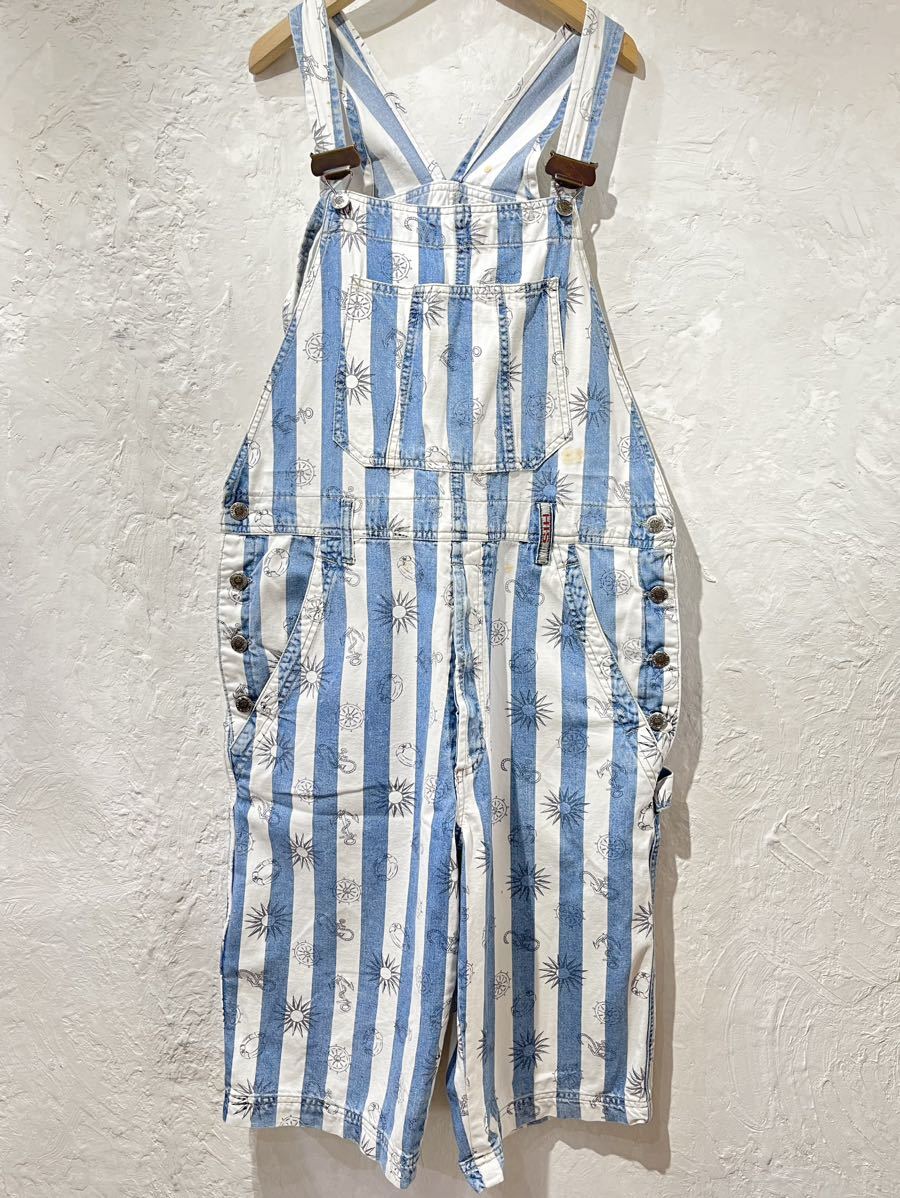 - 90'sビンテージHIS総柄ストライプハーフ丈オーバーオールサロペット