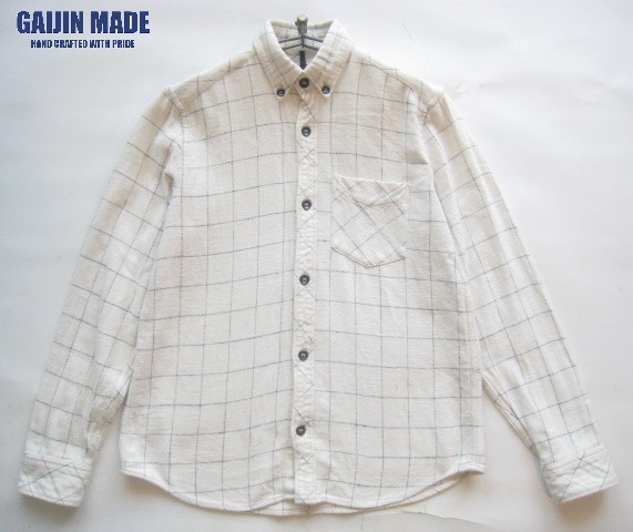 > 高級日本製!!ガイジンメイド GAIJIN MADE*チェック柄コットンネルボタンダウンシャツ S 白×黒 ハリラン H.R.MARKET