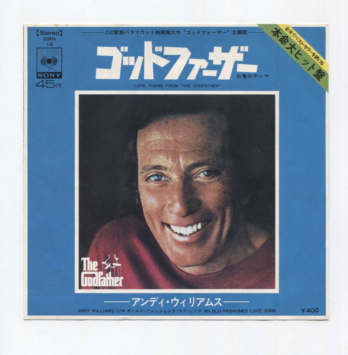 - 【EP レコード シングル 同梱可】 ANDY WILLIAMS アンディ・ウィリアムス ■ LOVE THEME FROM THE GODFATHER ゴッドファーザー 愛のテーマ
