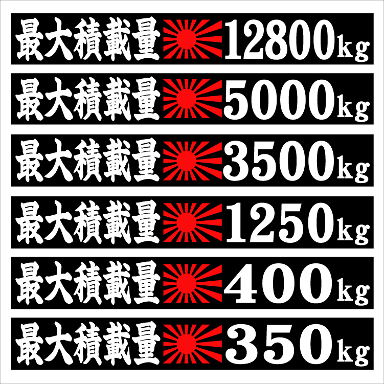 - 最大積載量ステッカー 旭日 楷書 25センチ 2枚組
