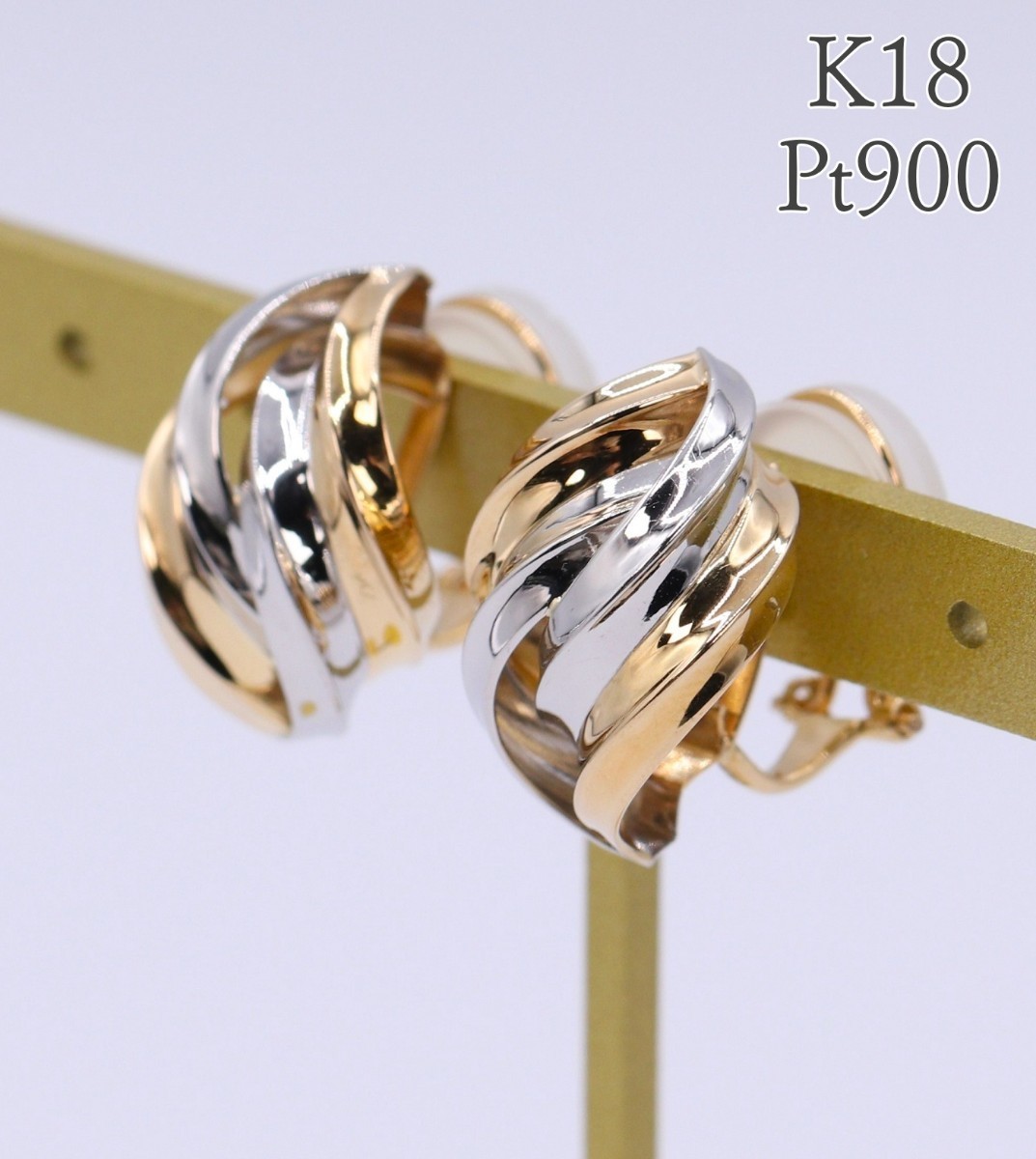 > CE54/ 18金プラチナ ボリュームあるデザインイヤリング K18YG Pt900 コンビ 3.83g / フープ高級ジュエリーアクセサリーピアス耳飾ゴールド