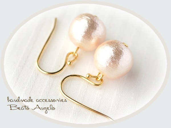 - ◆+angelo+コットンパールのシンプルピアス(p-160)ピンク 10mm G 春色 デザインフック
