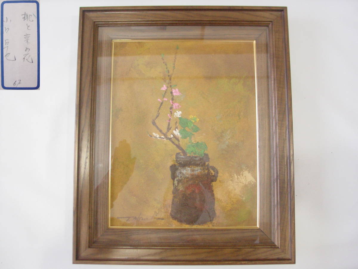 - ★小口卓也 『桃と菜の花』 油彩 F6号 油絵 額装 真作