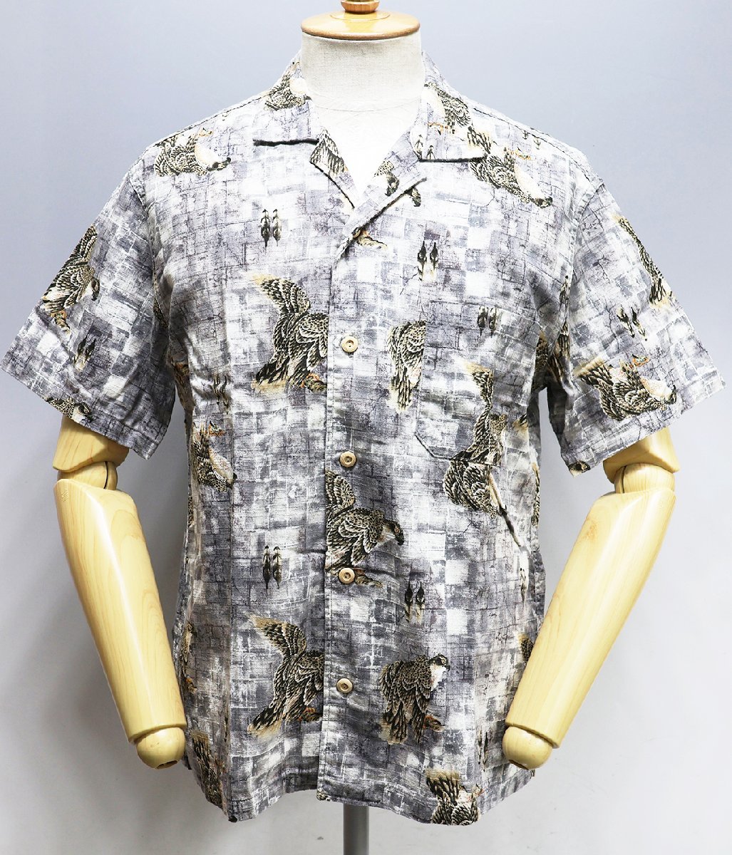 > kura by ETERNAL (備中倉敷工房 倉) 鷹柄 織柄ジャガード 半袖オープンシャツ Lot 25811 極美品 グレー size L / エターナル