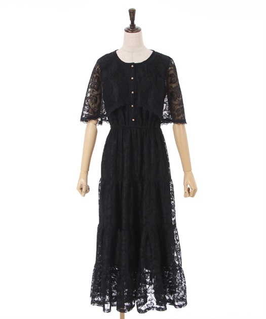 > 292◇ケープ風レースティアードワンピース 黒 ブラック axes femme アクシーズ ファム CI351X35