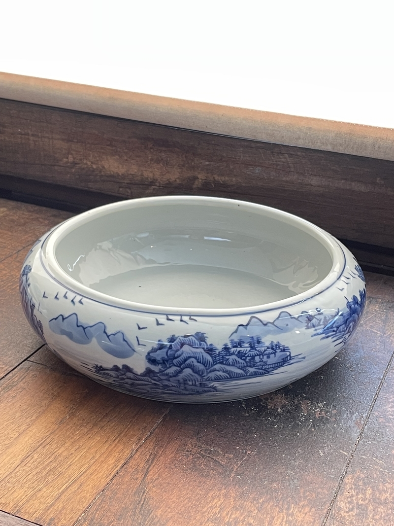 > ★新品!! 水鉢 平水盤 平魚缶 山水 陶器 金魚鉢 メダカ鉢 鉢カバー プランターカバー 和風 植物 レトロ 雑貨 容器 オブジェ M052210