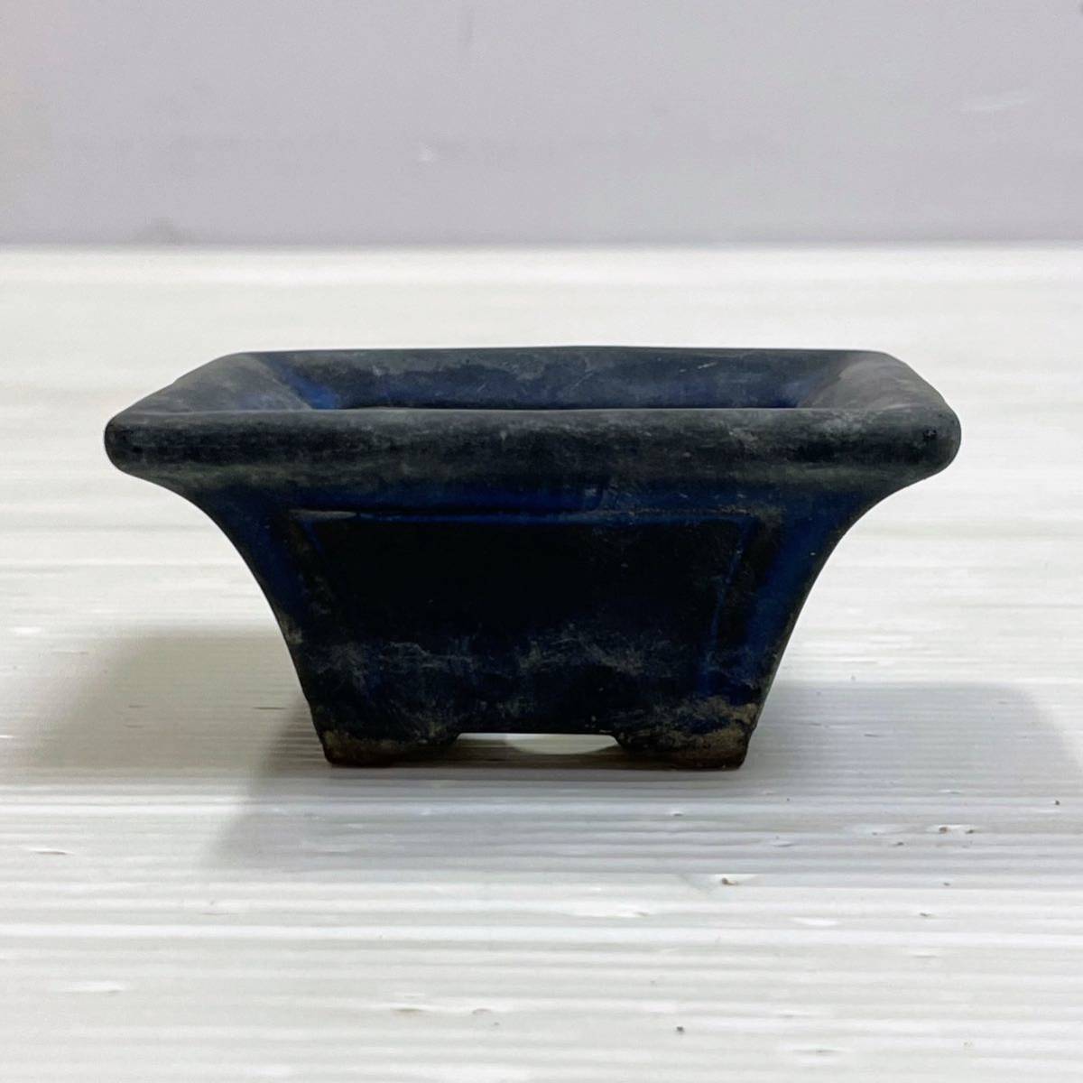 - ◯K27 盆栽鉢 瑠璃釉 長方鉢 在印 在名 ミニ盆栽鉢