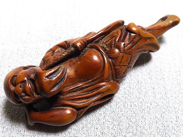 - 根付 木彫根付 彫刻細工 寝姿 仙人 時代 提げ物