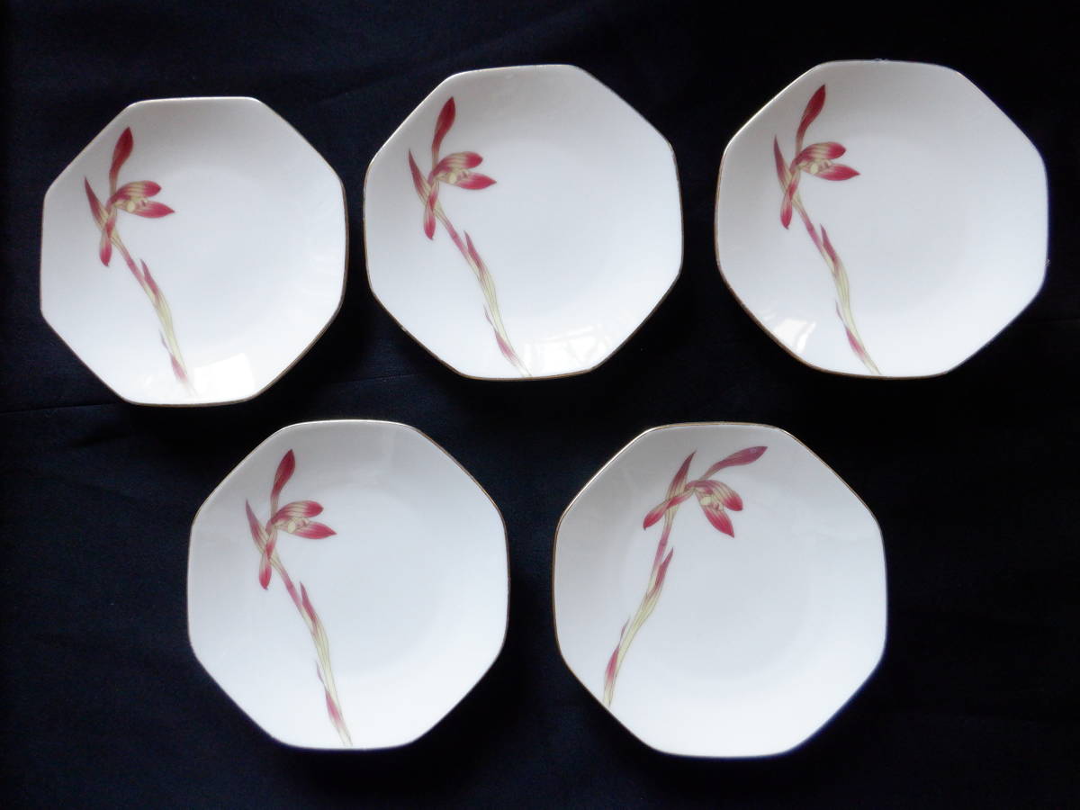 - 香蘭社 小皿 八角皿 あやめ図 5枚組 美品