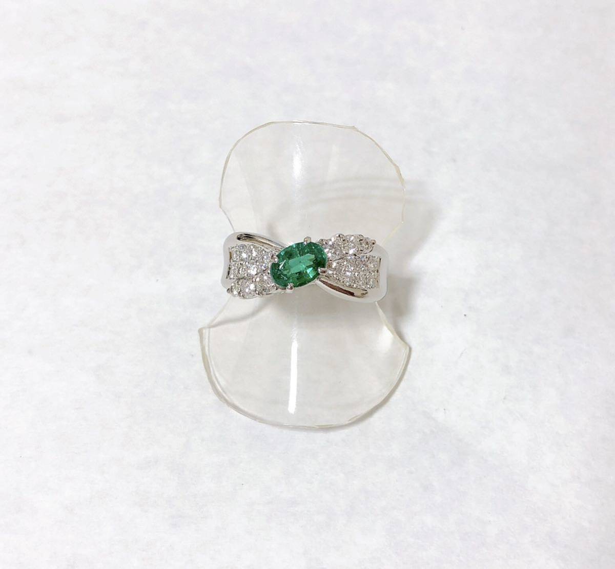 - 【質屋 尾張屋商店 東京】 ☆鑑別結果付☆ Pt900 エメラルドダイアモンドレディースリング #11