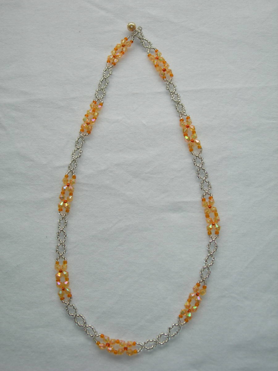 - ビーズ ネックレス(オレンジ) ハンドメイド 新品
