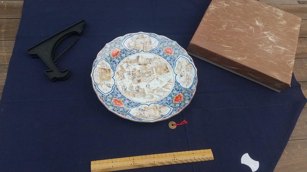 - 金盃酒造りの図 飾り皿 美濃焼 加山 紙箱 保管品 昭和後期