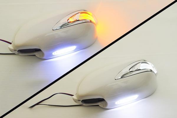 > 在庫処分特価 M35 ステージア V35 スカイライン セダン LED ウィンカーミラー [QX1/ポジ白光] フット付 カバー交換式 ドアミラー