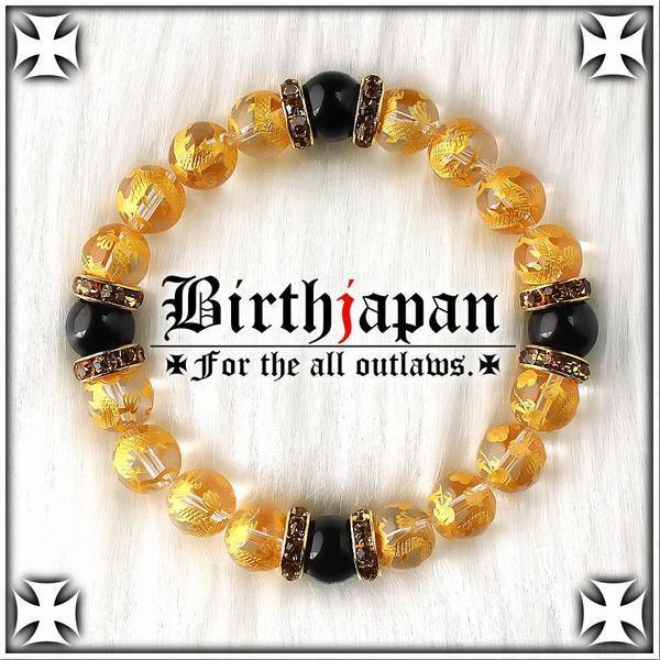 - 10mm/ロンデル×金龍水晶/オニキス数珠ブレスレット/オラオラ系
