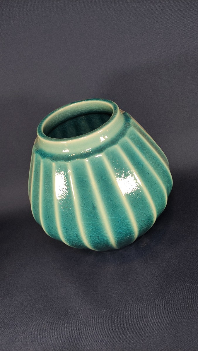 - c541 花瓶 花入 海鼠釉 ( 華月 ) アンティーク 時代物 花器