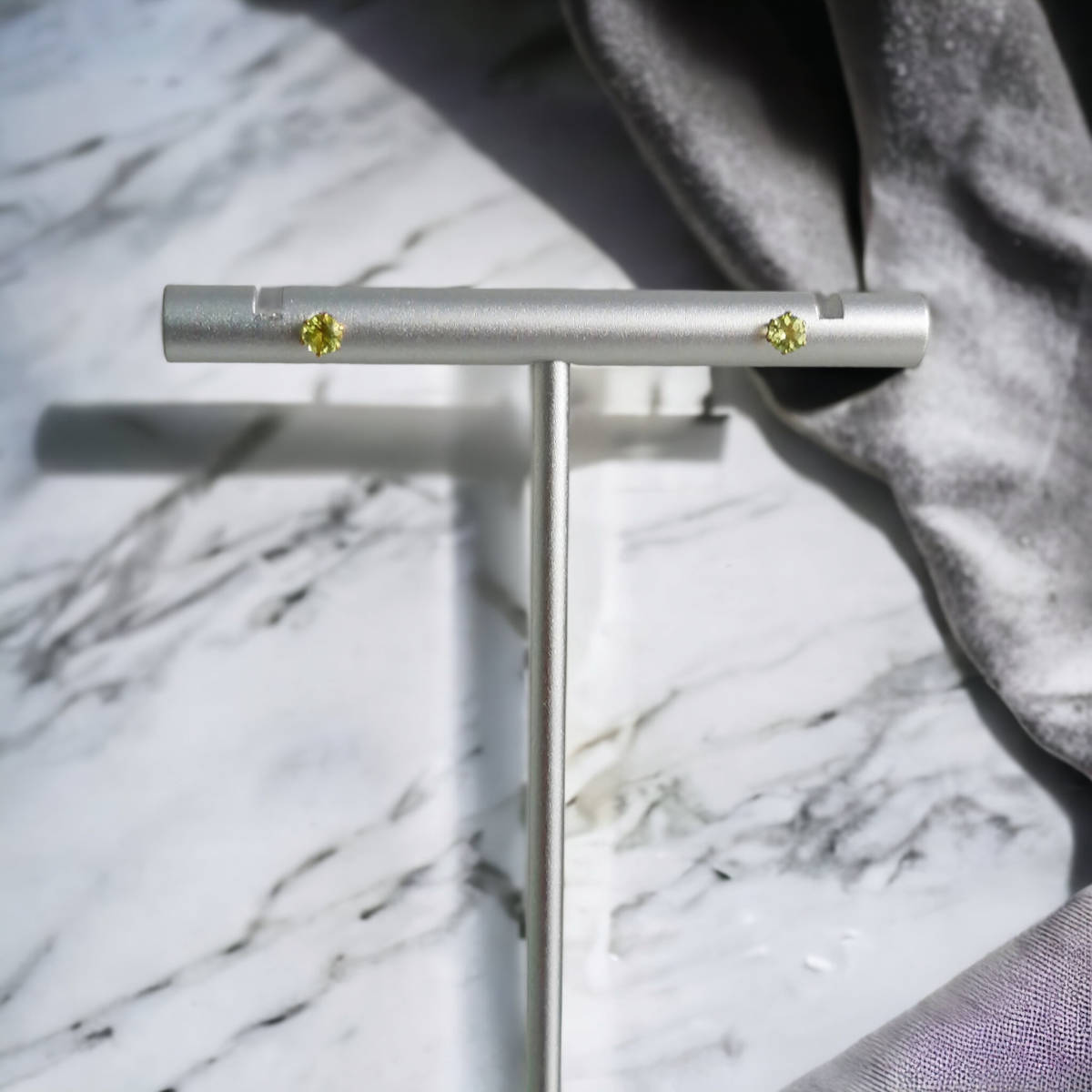 - 天然[was7518]ペリドットピアス8月誕生石 ラウンドシェイプ3mm 18金 k18