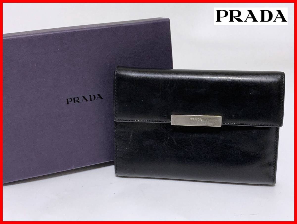 - 即決 PRADA プラダ 三つ折り 財布 黒 箱付 ウォレット レディース メンズ K2