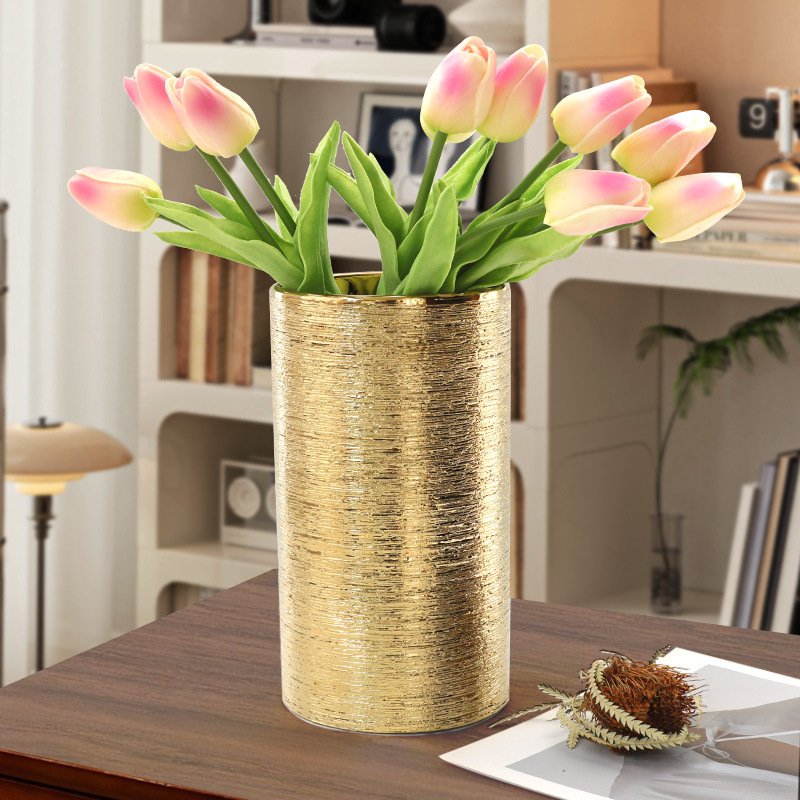 - セラミックゴールドのラグジュアリー花瓶 おしゃれ かわいい フラワーベース 水差し インテリア 小物 花器 雑貨 観葉植物 フラワースタンド