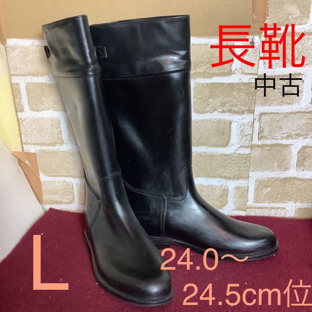 - 【売り切り!送料無料!】A-20 長靴!レインブーツ!L 24.0〜24.5cm位!黒!ブラック!雨!田んぼ!農業!仕事!バイト!中古!