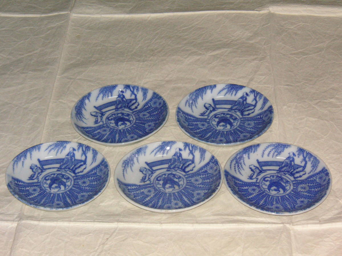 - 小皿 人物 鳳凰 鴨図 5客 ② (2016413)