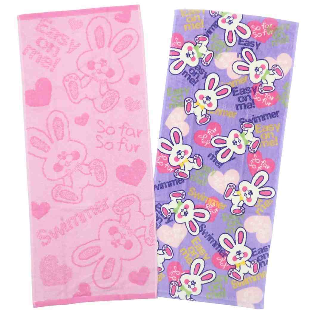 - ★新品 スイマー SWIMMER プリント&ジャガード ロングタオル2枚セット フェイスタオル No1 キューティードリーム