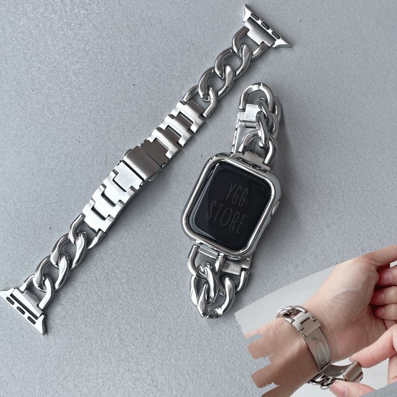 - AppleWatch Dバックル 三つ折れ チェーン ステンレス バンド ベルト アップルウォッチ シルバー 銀 9 8 7 6 5 4 3 SE SE2 38 40 41