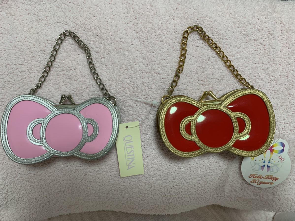 - ハローキティ30周年リボン型口金パースピンクと赤2個セット