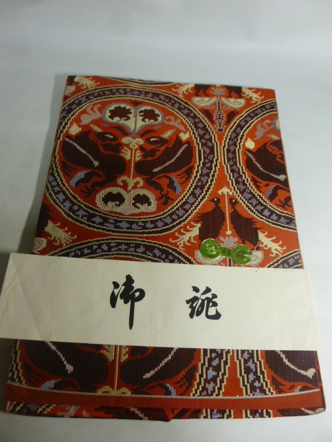 - 名古屋帯 丸鳳凰模様 朱色地/23062666