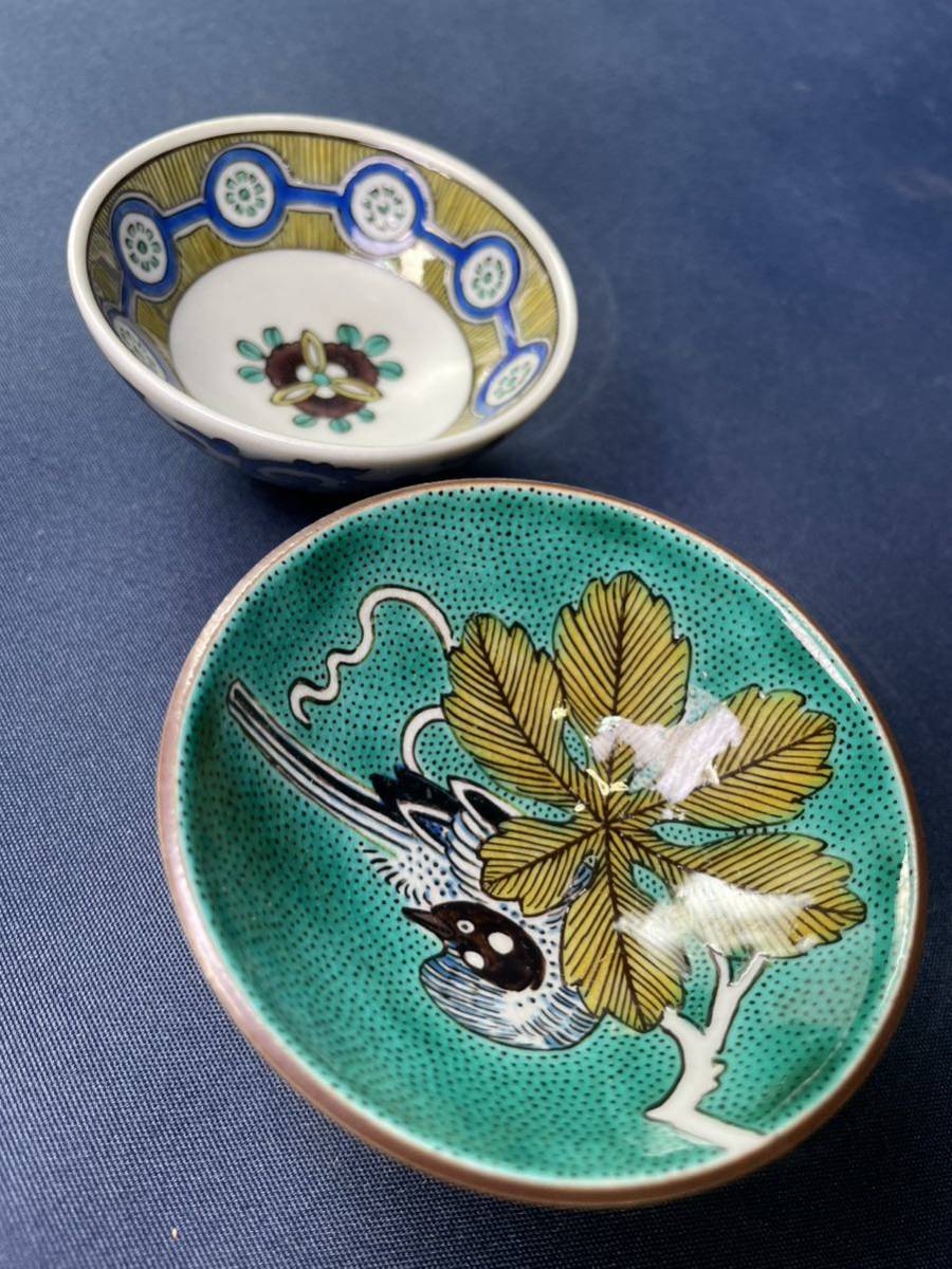 - r65 九谷焼 徳田八十吉 盃 2客 酒器 猪口 絵 色絵 人間国宝 古美術 骨董 時代物