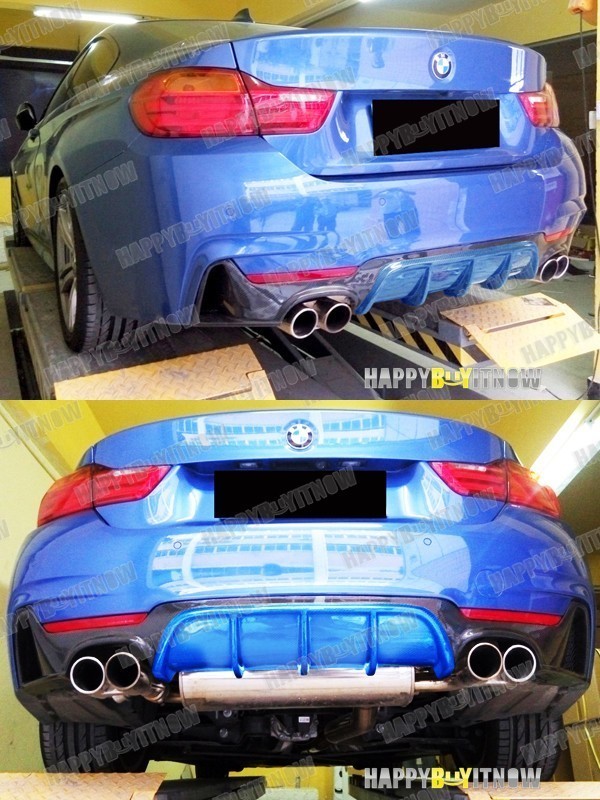 - BMW 4シリーズ F32 クーペ Mスポーツ リア ディフューザー 2色分け塗装 艶あり黒+純正色 P型 両側4本出しマフラー 2012+ RF-51033