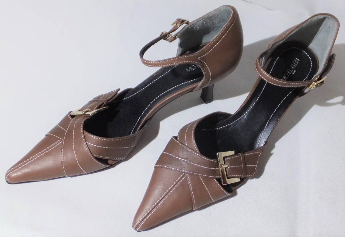 - MICHEL KLEIN ミッシェルクラン セパレートストラップ パンプス 茶系 23.5cm E ★Mw1640
