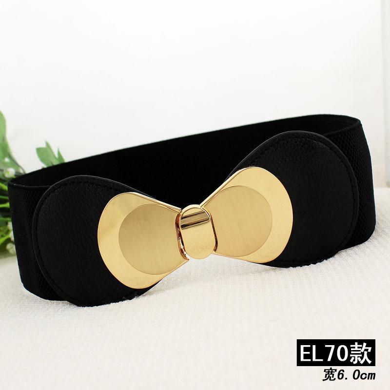 - 【翌日発送】金リボンバックル ★ブラック 幅広ゴムベルト可愛いベルト