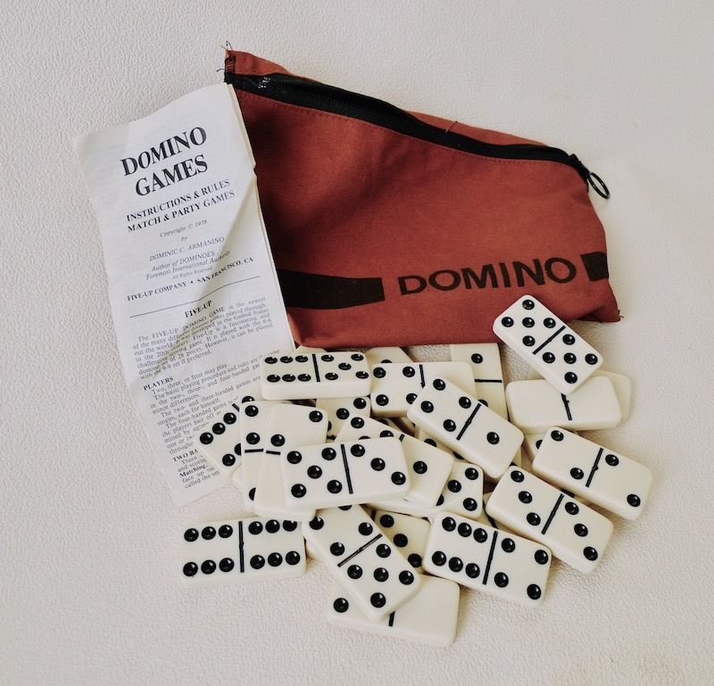 - 米国製 ドミノ牌一式 ポーチ、説明書付き