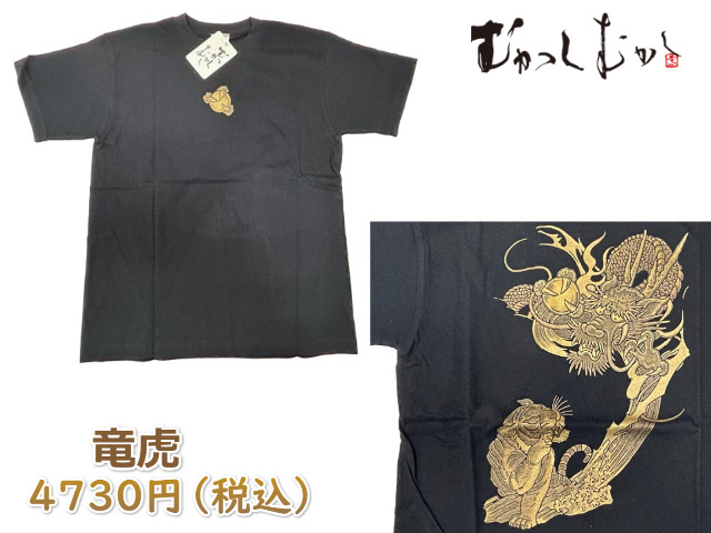 - 【竜虎-2】■黒■Mサイズ■4730円■半袖Tシャツ■むかしむかし 和柄 金彩仕上げ